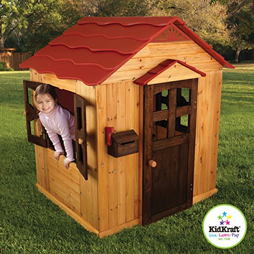 - Constructed from wood, the Outdoor Playhouse by KidKraft is sturdy and offers years of reliable use. It has a subtle blend of red and brown that creates the perfect playful mood in the garden and lends a traditional look. This playhouse has door and wide windows that open and closes for your kids to play comfortably.